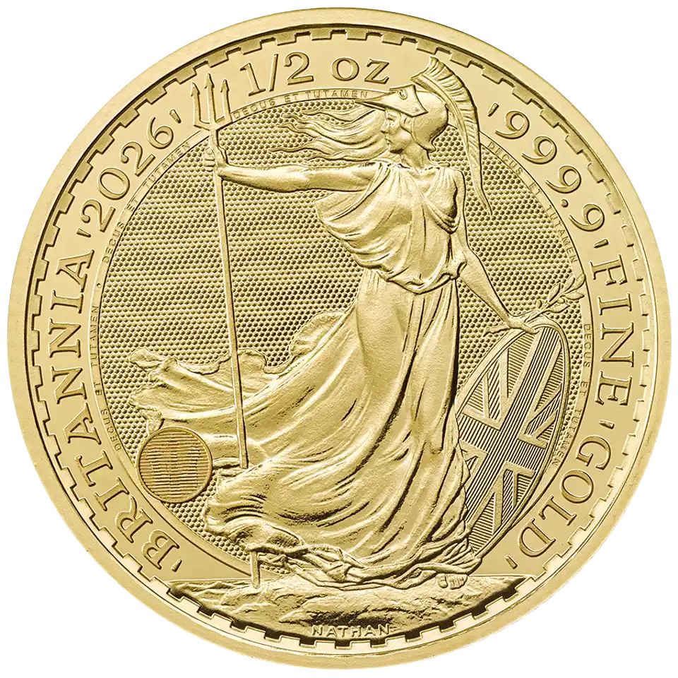 Our UK-made 1/2 Half Ounce 2026 Royal Mint Britannia Gold Coins boast 24 Carats, 99.99% purity, and are LBMA approved, making them a great option for first-time investors and collectors.