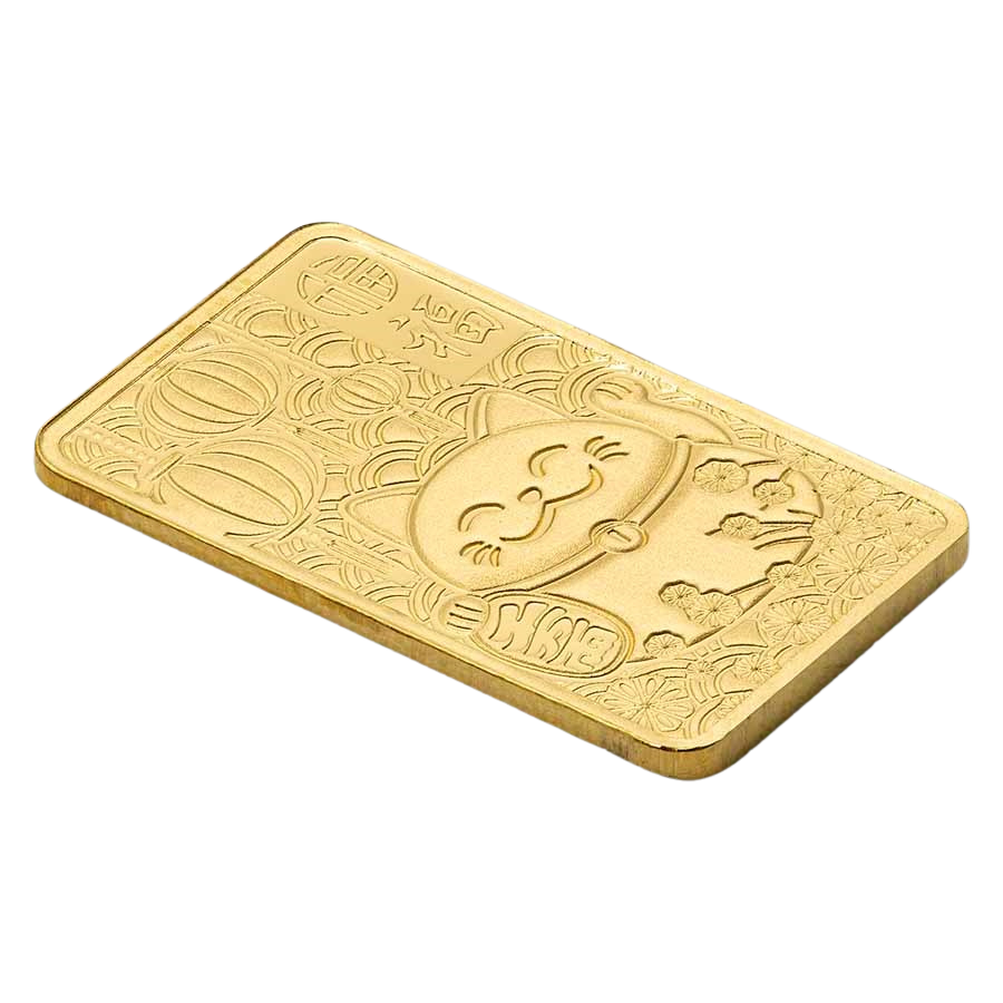 All our 1 gram PAMP Lucky Cat gold bars are brand new, with a unique serial number so you can track the gold’s quality. This product comes in a credit card-sized package.