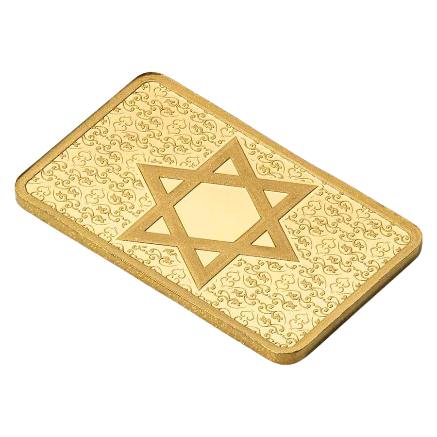 All our 1 gram PAMP Star of David gold bars are brand new, with a unique serial number so you can track the gold’s quality. This product comes in a credit card-sized package.