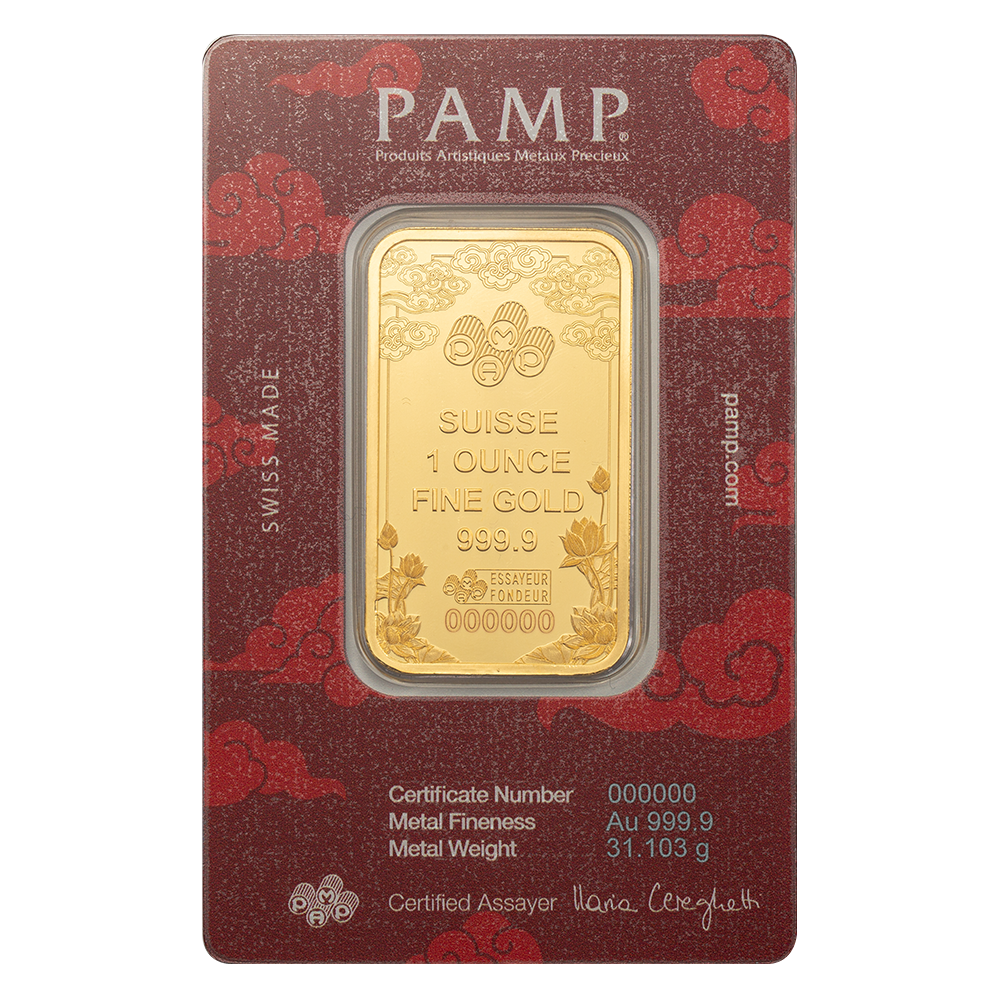 Each 1 ounce PAMP Good Luck Yellow Dragon gold bar comprises 24 carat gold, ensuring a brilliant shine and lasting value. Whether you're a seasoned investor or a discerning collector our 1 ounce gold bars are a smart choice.