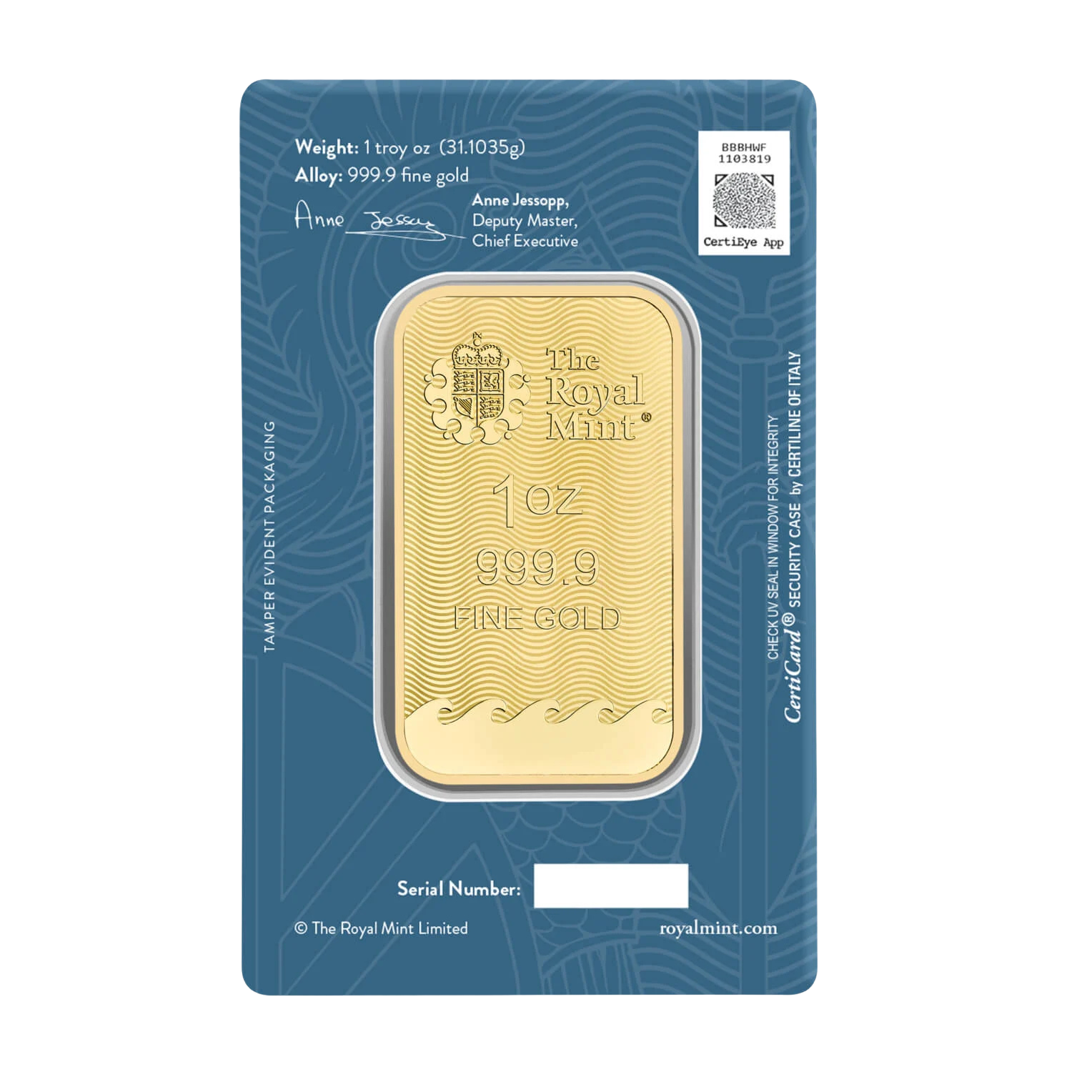 All of our 1 ounce Royal Mint gold bars carry LBMA approval. Each of our 1oz gold bars is stamped with a unique serial number, enabling you to trace its purity.