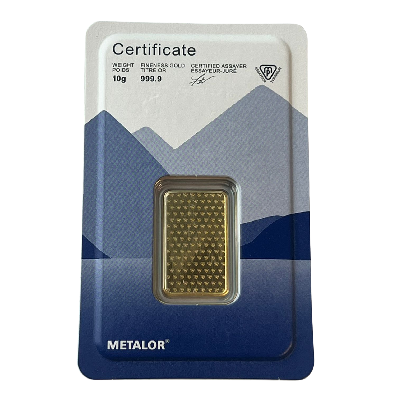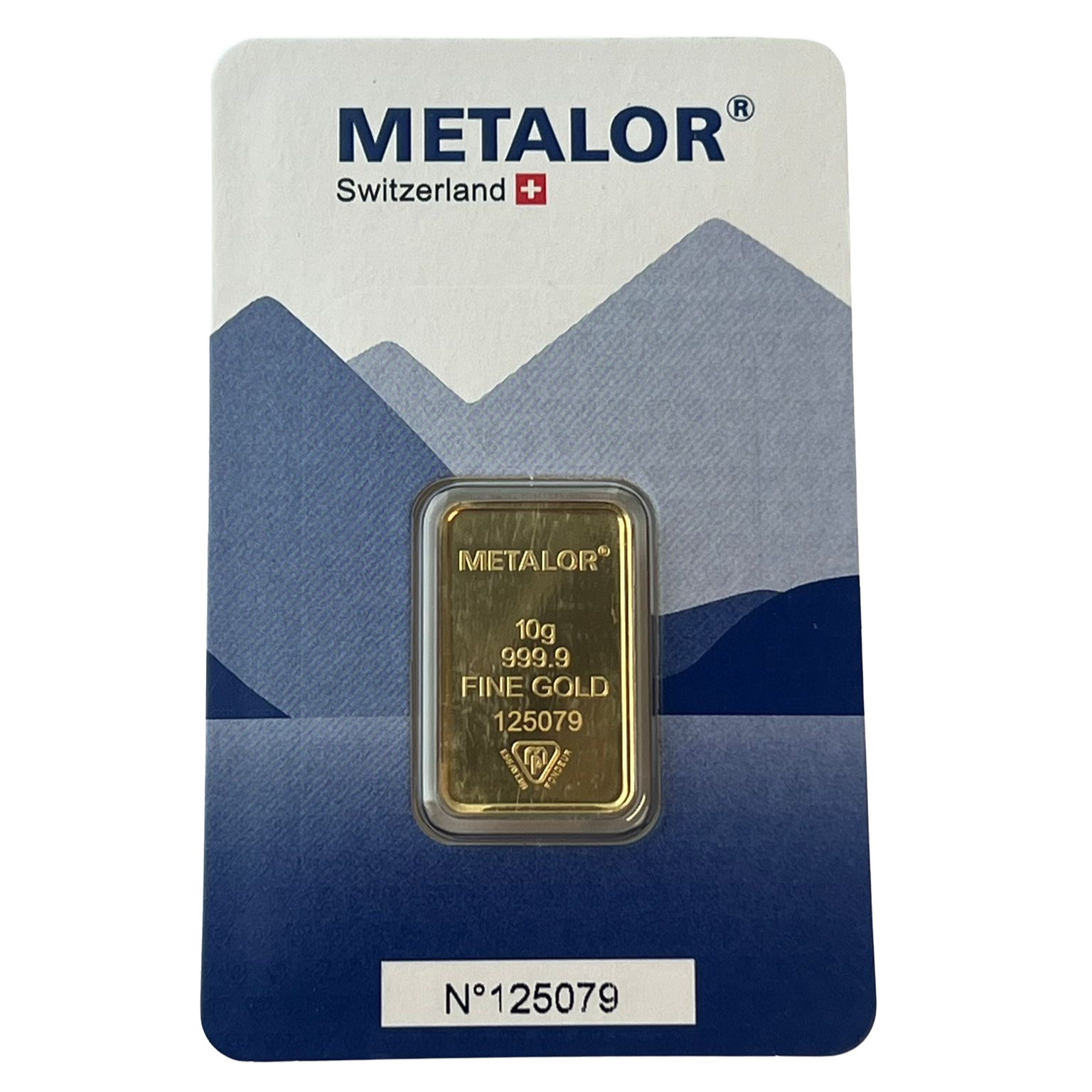 Designed by the reputable Swiss bullion brand Metalor, all of our 10 gram Metalor gold bars carry LBMA (London Bullion Market Association) approval. Each of our 10g gold bars is stamped with a unique serial number, enabling you to trace its purity.