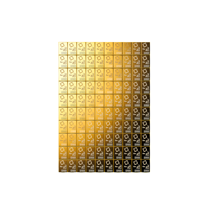 Our Swiss-made 100 gram Valcambi combi gold bars boast 24 Carats, 99.99% purity, and are LBMA approved, making them a great option for first-time investors and collectors.