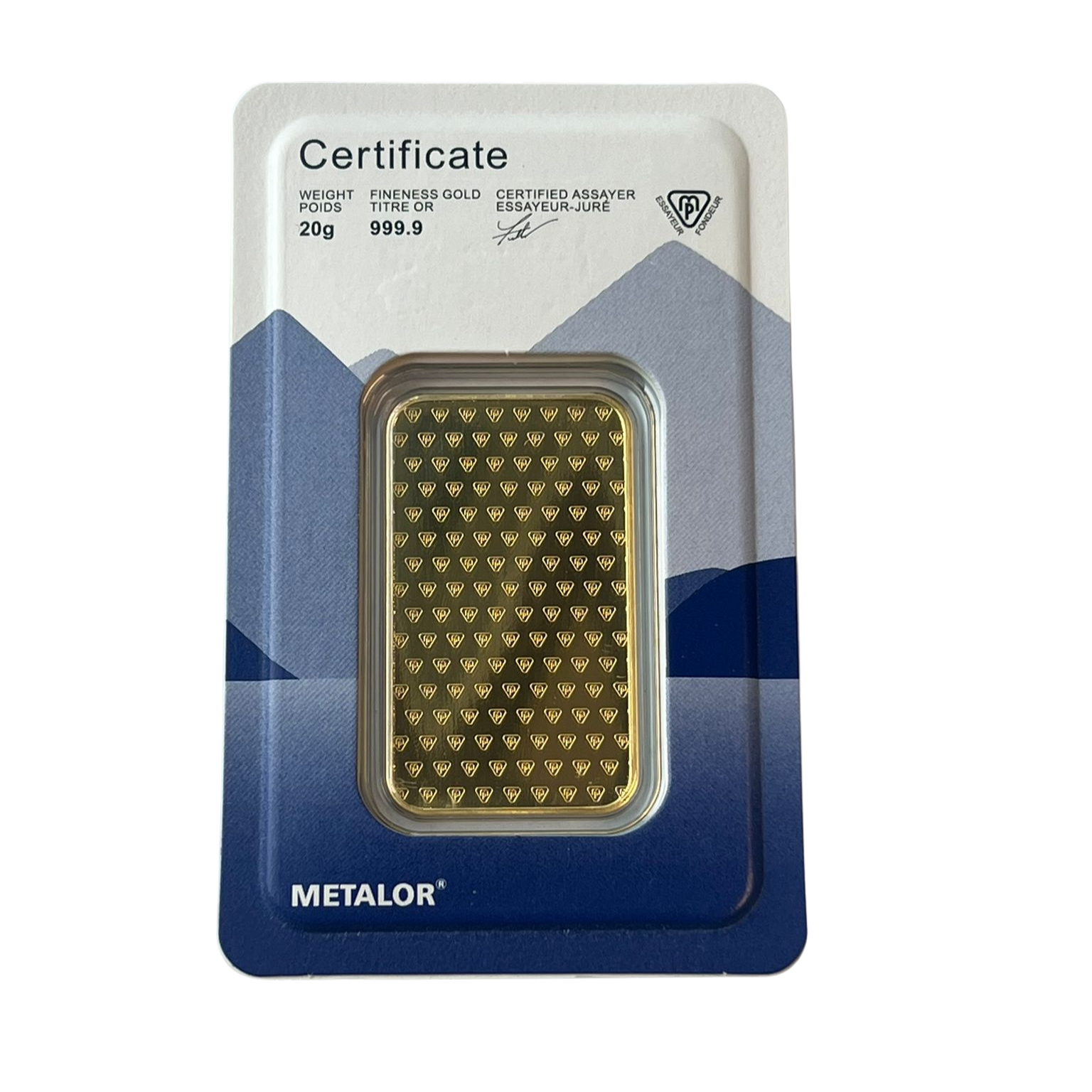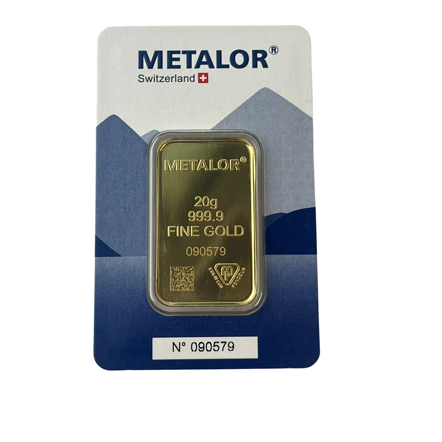 Our Swiss-made 20 gram Metalor gold bars boast 24 Carats, 99.99% purity, and are LBMA approved, making them a great option for first-time investors and collectors.