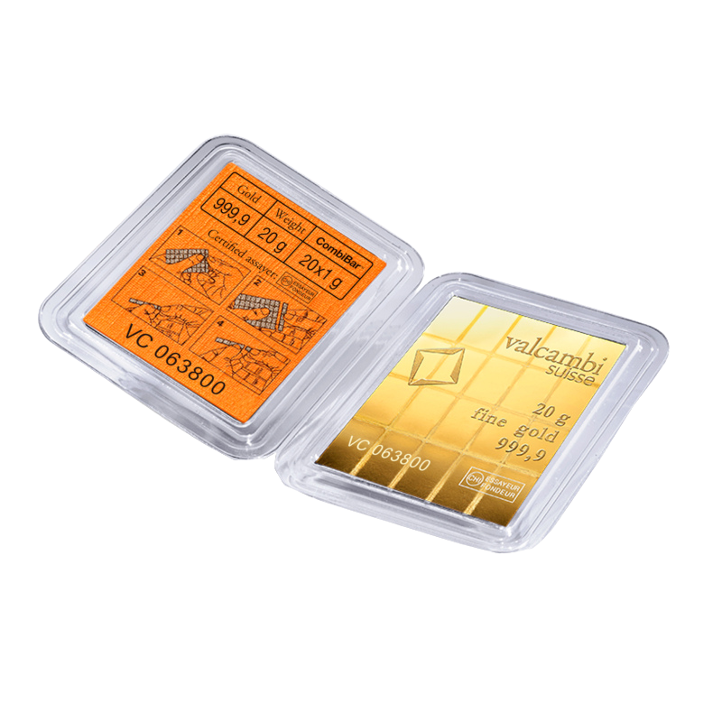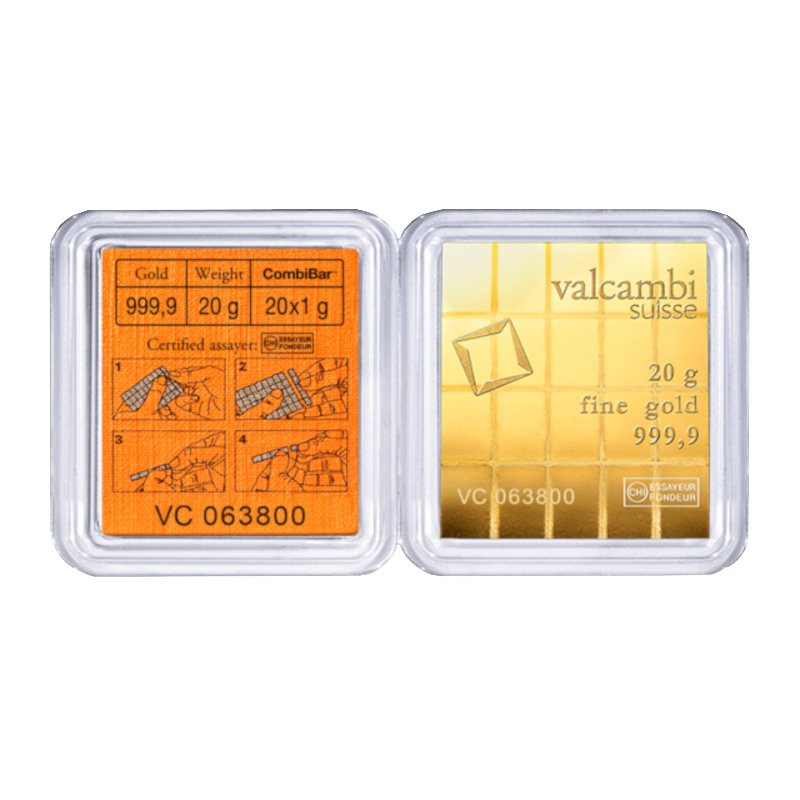 Our Swiss-made 20 gram Valcambi combi gold bars boast 24 Carats, 99.99% purity, and are LBMA approved, making them a great option for first-time investors and collectors.