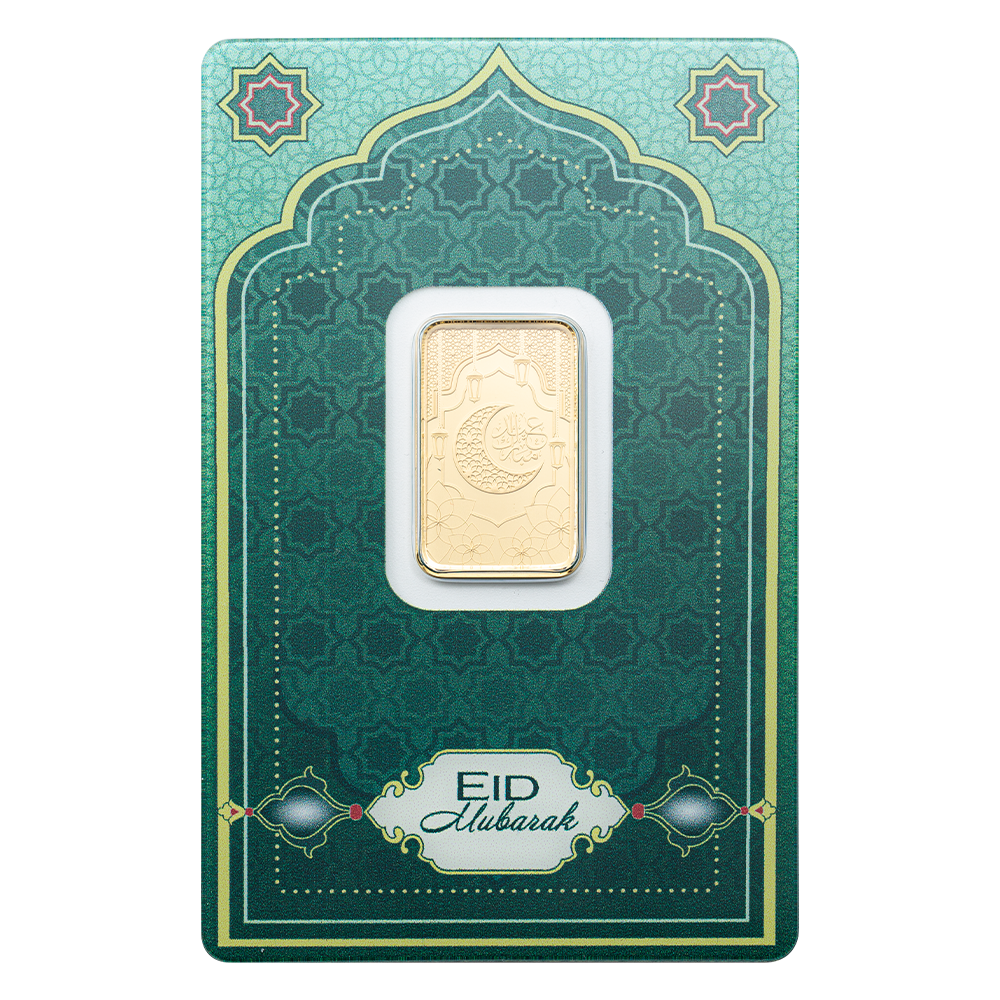 Crafted in pure gold, the Eid Mubarak 5g legal tender bar is more than a gift, it’s a lasting expression of celebration and togetherness. Honour the spirit of giving this season and mark Eid al-Fitr (the end of Ramadan) and Eid al-Adha with this timeless design. Individually serialized and housed in a vibrant CertiPAMP™ card with accompanying gift sleeve, this bar has a limited mintage of 6,000 pieces.