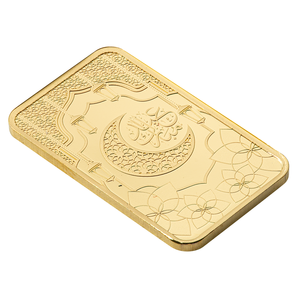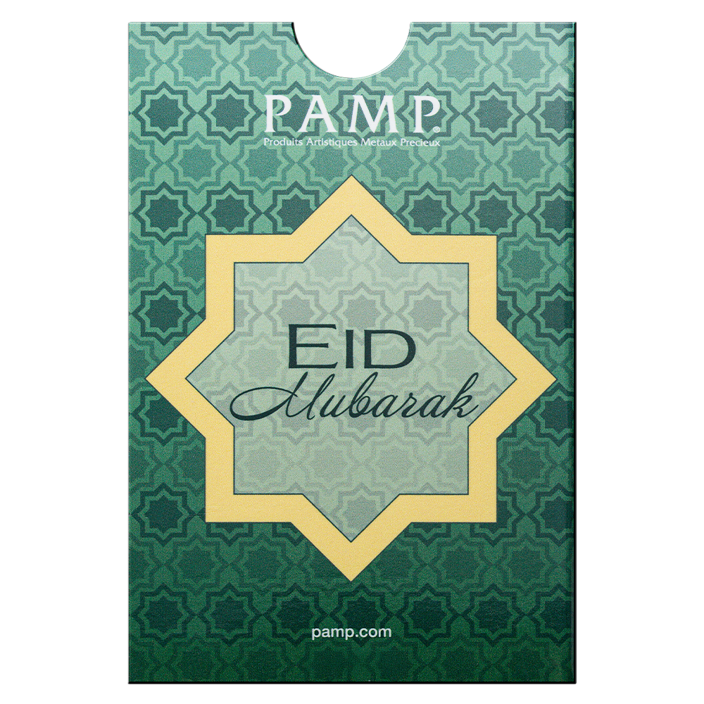 All our 5 gram PAMP Eid Mubarak gold bars are brand new, delivered in a credit card-sized package with a unique serial number so you can track the gold’s quality.