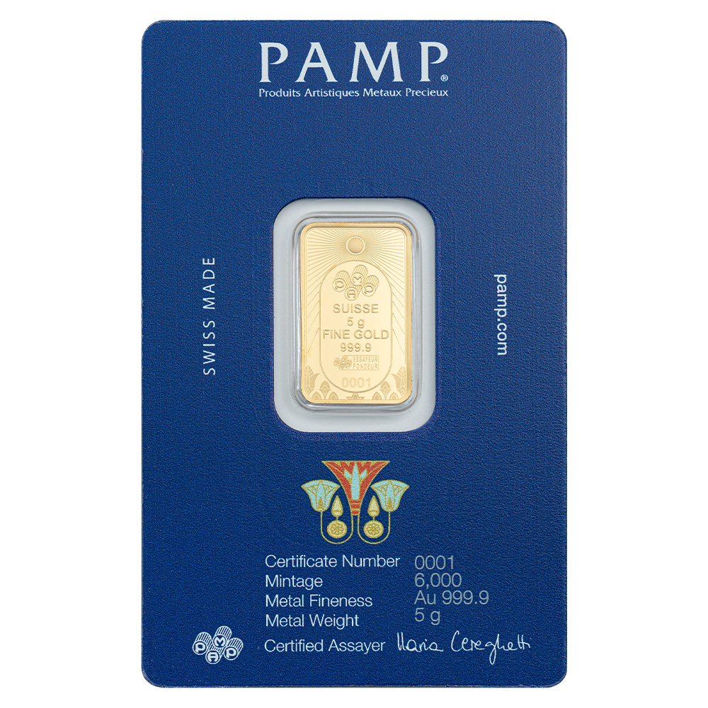 All our 5 gram PAMP Lucky Scarab gold bars are brand new, delivered in a credit card-sized package with a unique serial number so you can track the gold’s quality.