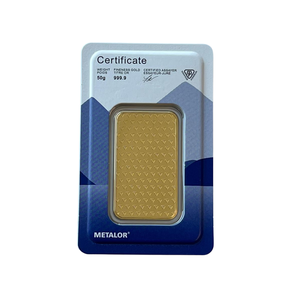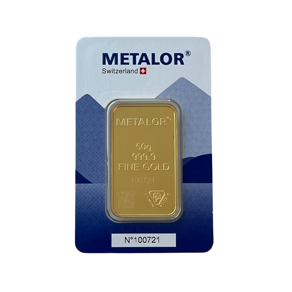 Our Swiss-made 50 gram Metalor gold bars boast 24 Carats, 99.99% purity, and are LBMA approved, making them a great option for first-time investors and collectors.